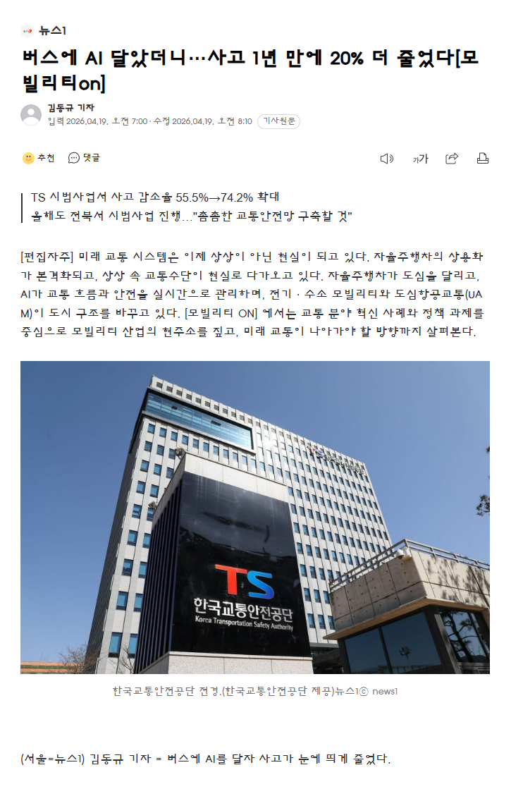 버스에 AI 달았더니…사고 1년 만에 20% 더 줄었다