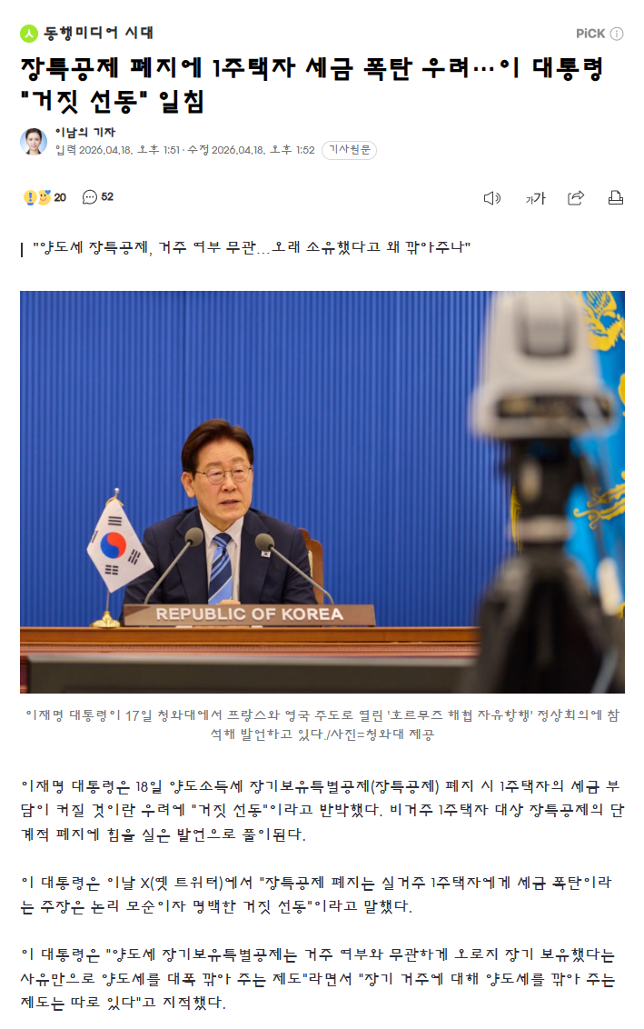 장특공제 폐지에 1주택자 세금 폭탄 우려…이 대통령 "거짓 선동" 일침
